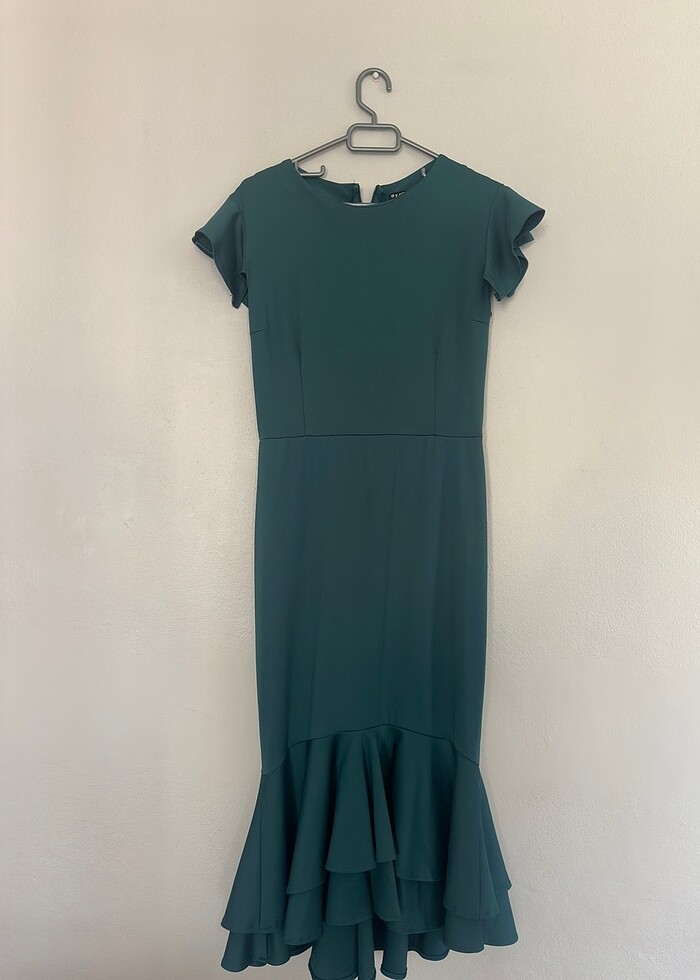 Vücuda yapışan midi boy abiye elbise Petrol yeşili