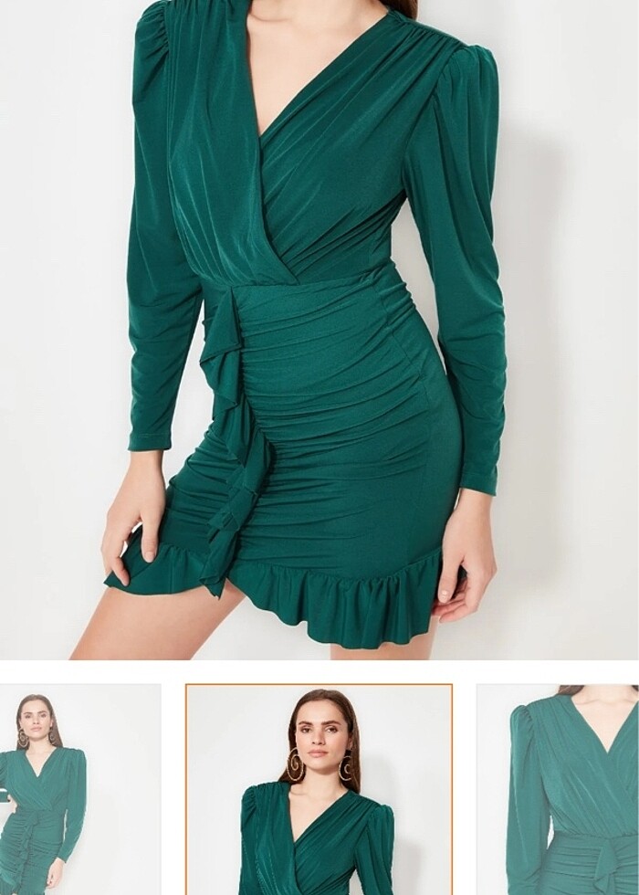 Vücuda Yapışan Volanlı Örme Kısa Şık Abiye
