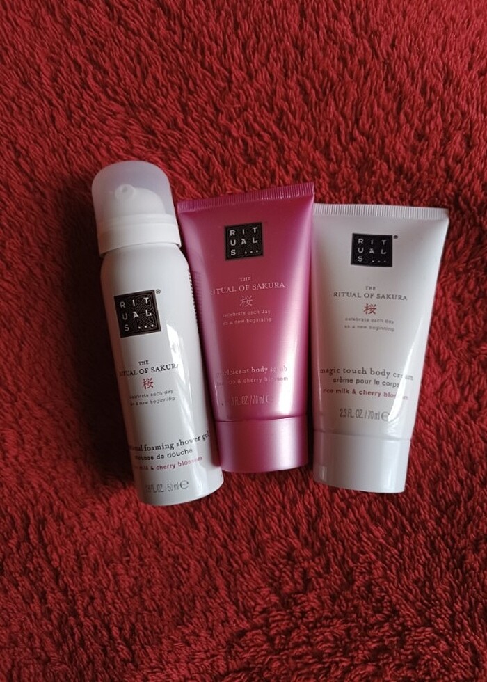 The Ritual of Sakura markasının orjinal ürünleridir. İçerisinde Shower gel (vücut jeli), body scrub ve body cream (vücut kremi) bulunmaktadır. Ürünler hiç kullanılmamıştır. Son kullanma tarihleri son iki fotoğrafta mevcuttur.