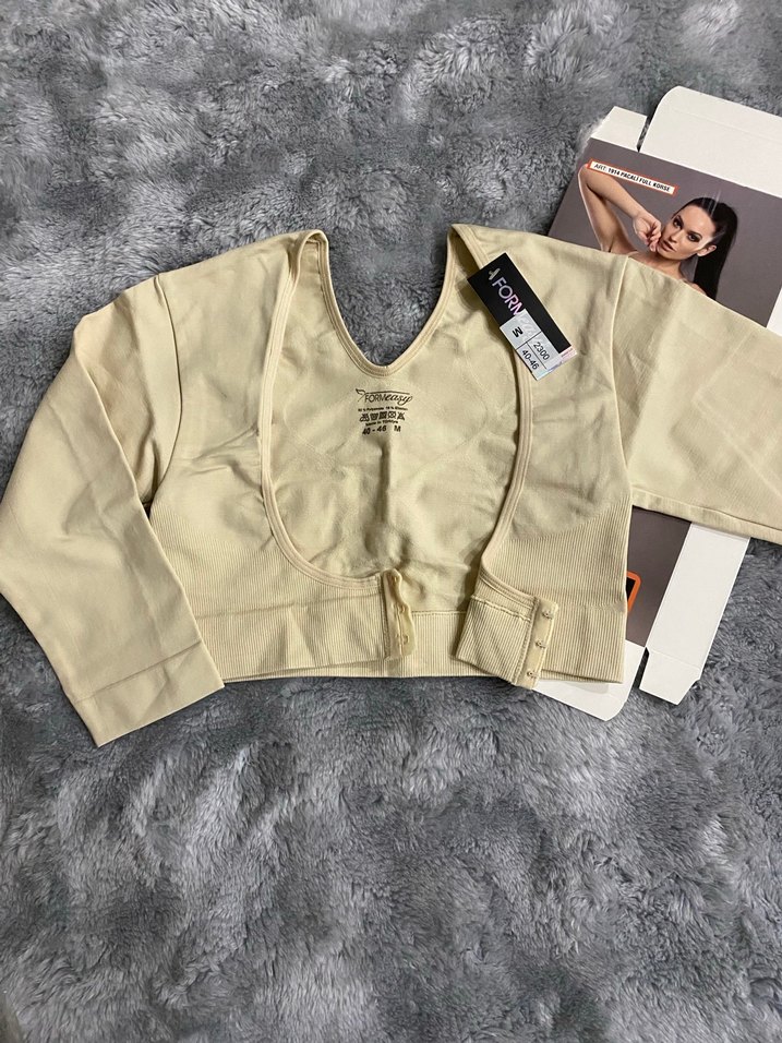 Desensiz, kısa boylu, bej renkte, emzirme için tasarlanmış vücuda oturan bir korsedir. M beden