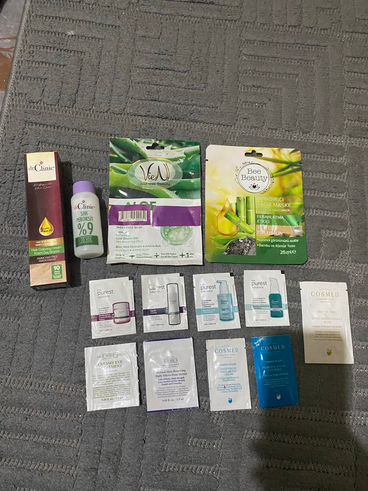 Cildi nemlendiren ve besleyen yüz maskeleri, serumlar ve kremler içeren çeşitli cilt bakım ürünleri seti. Boya da sifirdir