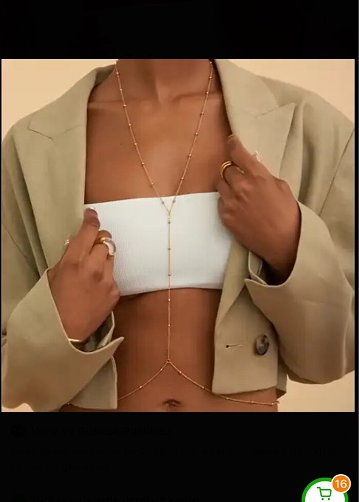 Vücut zinciri Gold gümüş iki renk seçeneği mevcuttur her bedene uygundur uzatmaya payı da vardır