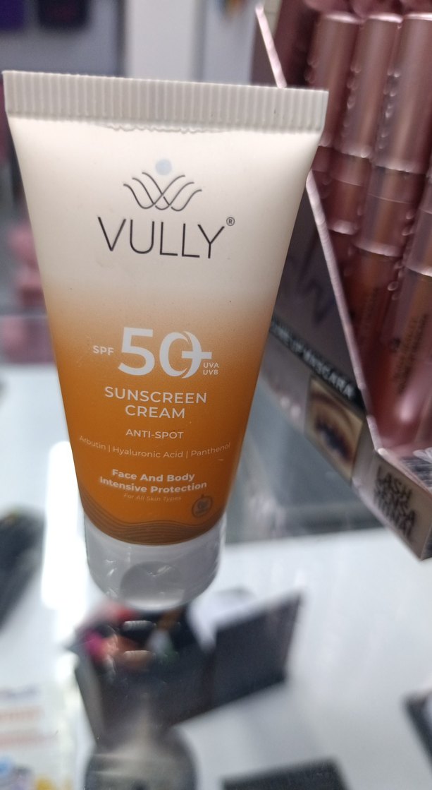 Vully SPF 50+ güneş kremi, yüz ve vücut için yoğun koruma sağlar. Anti-leke özellikli, hyaluronik asit ve panthenol içerir. ☀️
