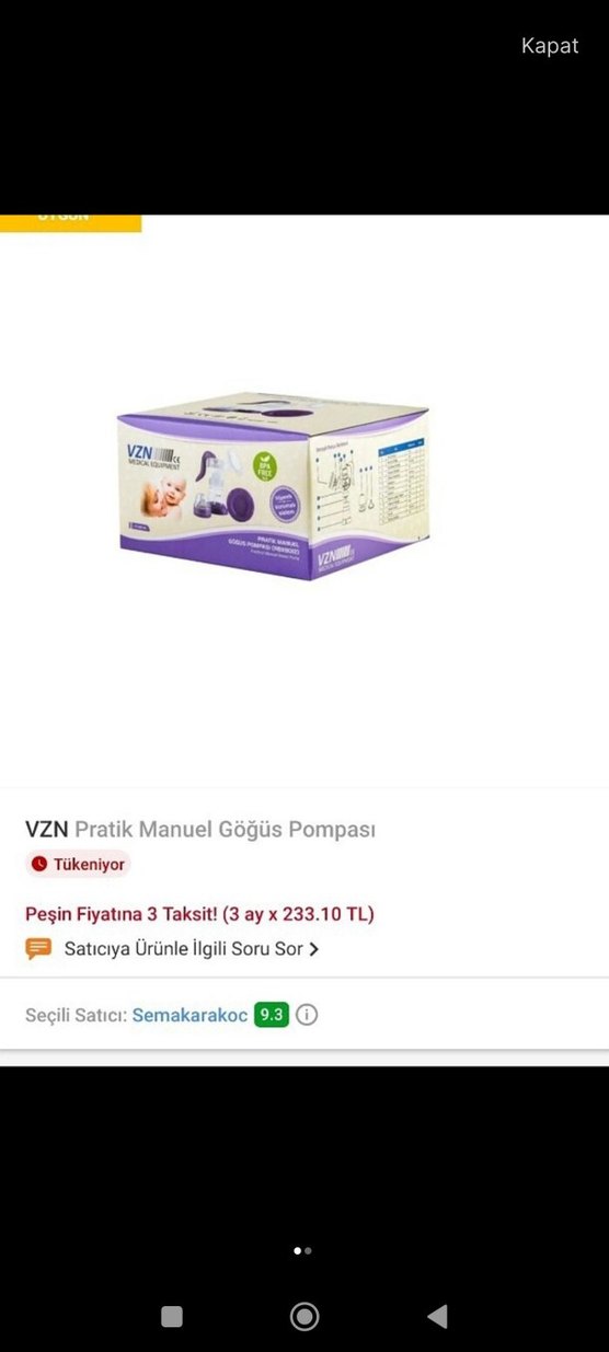 VZN pratik manuel göğüs pompası, açık mor renkte kolay ve etkili süt sağımı sağlar. Kompakt ve kullanımı kolay tasarım. sıfır ürün