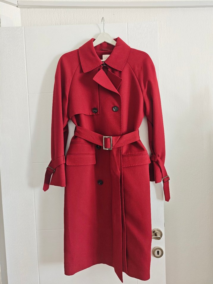 w collection bordo Kemerli Uzun Kadın Trençkot