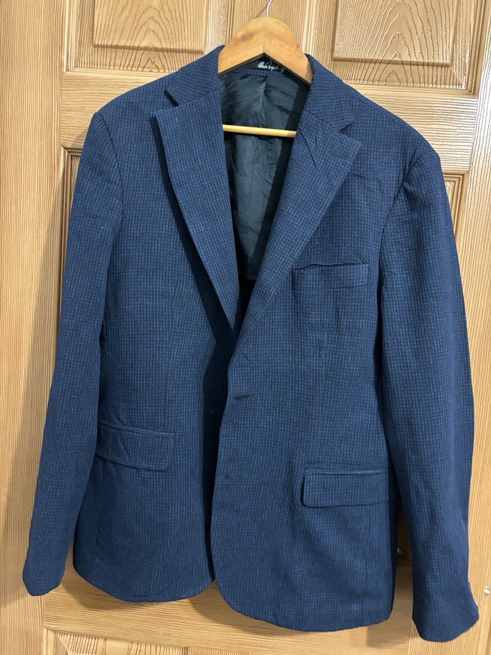 Düğmeli, mavi erkek ceket, normal kesim, uzun kollu ve ofis kullanımı için uygundur. Kullanılmış üründür. Dirsek kısmından rahatsız olanlar oraya arma yada isteği bir şeyi ( ütü ile yapışanlar var. ) kullanabilir.