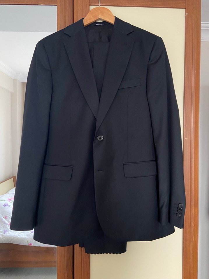 Bedeni olmadığı için satıyorum. Takım. Sıfır, etiketli, mağazadan nasıl alacaksanız o şekilde. 50/6 drop, özel İtalyan kumaş. %100 yün. Düz desen, siyah renk.