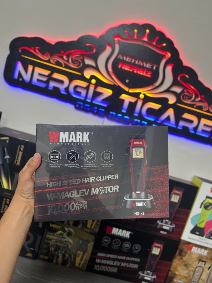 W MARK yüksek hızlı saç kesme makinesi, 10.000 RPM W-MAGLEV motor ile güçlü kesim sağlar. Siyah tasarımı ile profesyonel kullanım sunar. ✂️