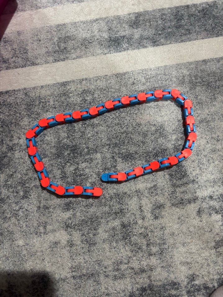 Hem çocuklar hem de yetişkinler için harika bir fidget toy (stres oyuncağı)! Eklemli yapısı sayesinde dilediğiniz şekli verebilir, birbirine geçmeli parçalarıyla farklı formlar oluşturabilirsiniz. • Durumu: Tertemiz, kırığı veya eksiği yoktur. Tüm eklemleri sağlam ve tıkır tıkır çalışıyor. • Özellik: Dikkat dağınıklığına iyi gelir, stres atmaya yardımcı olur ve el becerisini geliştirir. Çıt çıt sesiyle oynaması çok keyiflidir. • Renk: Canlı Mavi ve Turuncu. #wackytracks #stresoyuncağı #fidgettoy #zekatoyuncağı #eğiticioyuncak #popit #oyuncak #streszinciri #dolap #ikincieloyuncak #montessori #dikkatgeliştirici