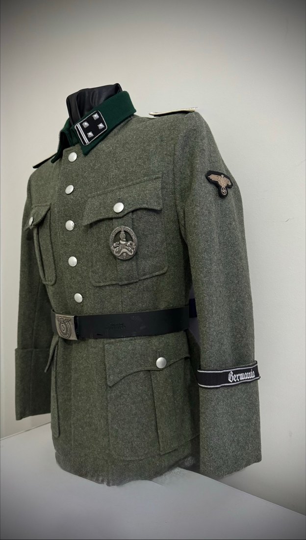 SS-Standarte m36 Germania”, Nazi Almanyası’nın genişleme ve savaş dönemlerinde kullanılan; SS-VT’den doğup Waffen-SS’in “Das Reich” tümenine dönüşen askerî bir SS alayıydı. Üniformanın üzerindeki anti partizan rozeti dahil Kemer ve tokası satışa dahil değildir iadesi yoktur