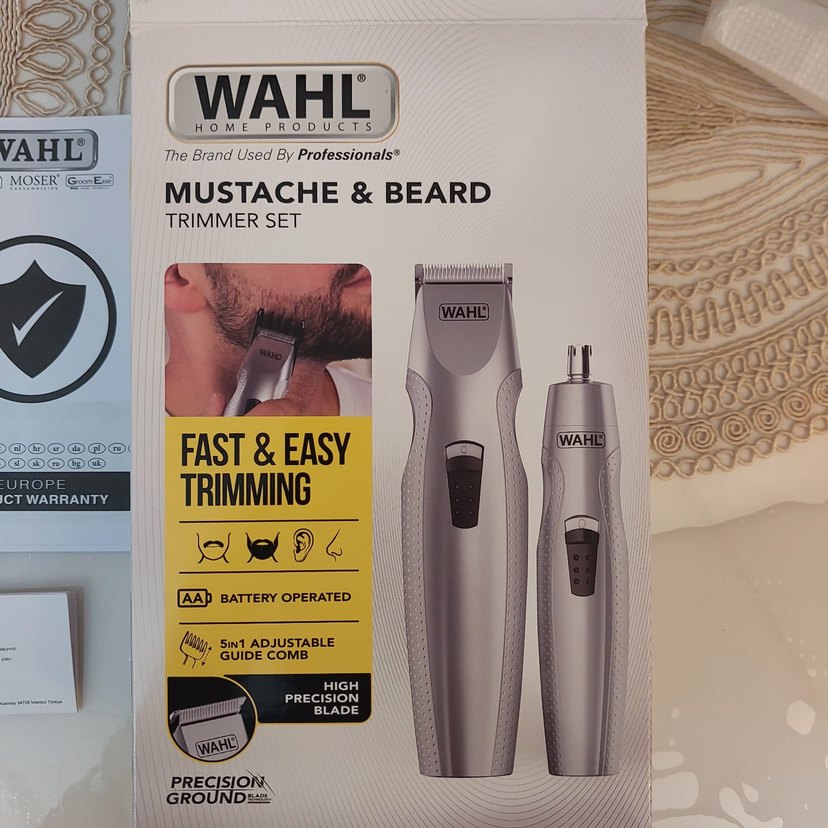 Wahl gri bıyık ve sakal düzeltici seti, pilli çalışır, 5'li ayarlanabilir tarak ve hassas kesim bıçakları ile hızlı ve kolay tıraş sağlar.
