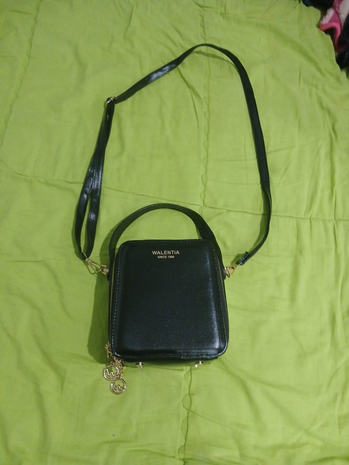 Walentia markalı siyah deri kadın çantası, minimal tasarım, fermuarlı ve ayarlanabilir askılı, cesur sokak stili için uygun.