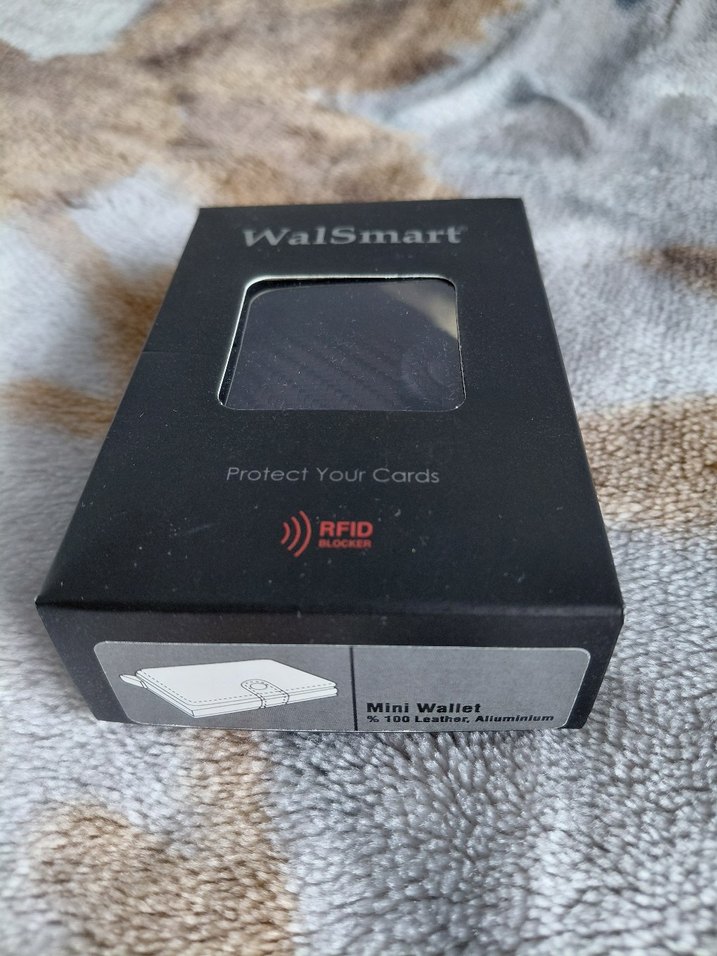 Hiç kullanılmadı. WalSmart siyah mini cüzdan, kartlarınızı koruyan RFID engelleme teknolojisine sahiptir. Gerçek deri ve alüminyumdan üretilmiştir.