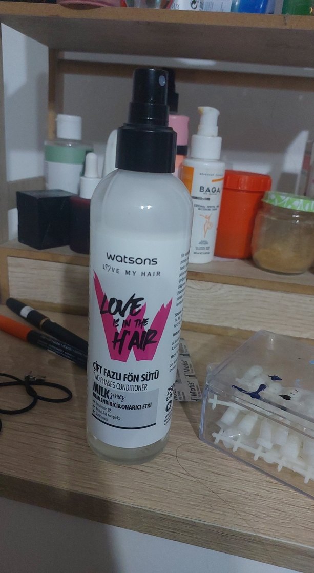 Watsons Love My Hair çift fazlı fön sütü, süt proteinleri ve calendula özü içerir, saçları besler ve kolay şekillendirme sağlar. ♀️