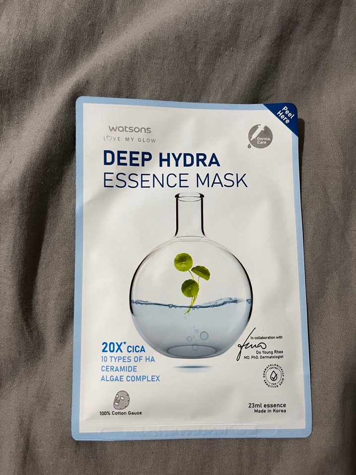 Watsons Deep Hydra Essence Mask, cildi derinlemesine nemlendirir ve yatıştırır. Ceramide, alg kompleksi ve 10 çeşit hyaluronik asit içerir. %100 pamuklu gazlı bezden yapılmıştır.