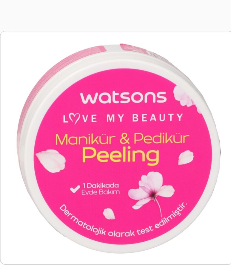 Watsons Love My Beauty Manikür & Pedikür peeling kremi, 1 dakikada evde bakım sağlar. Dermatolojik olarak test edilmiştir.