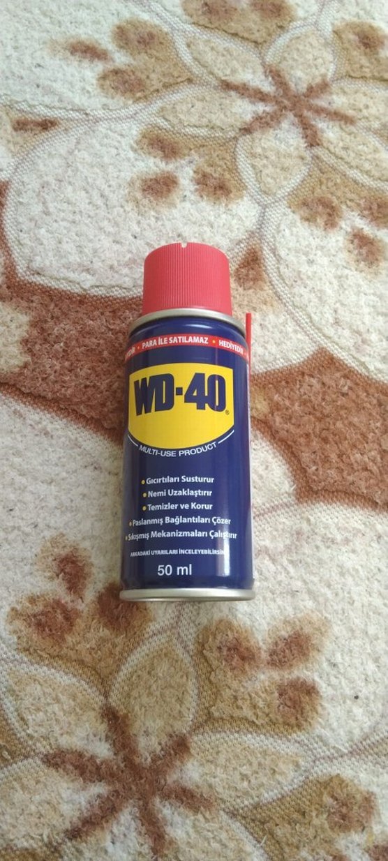 WD-40 çok amaçlı yağlayıcı 50ml sprey kutuda. Gıcırdatan sesi susturur, nemi uzaklaştırır, temizler, korur ve paslanmış bağlantıları çözer. ️