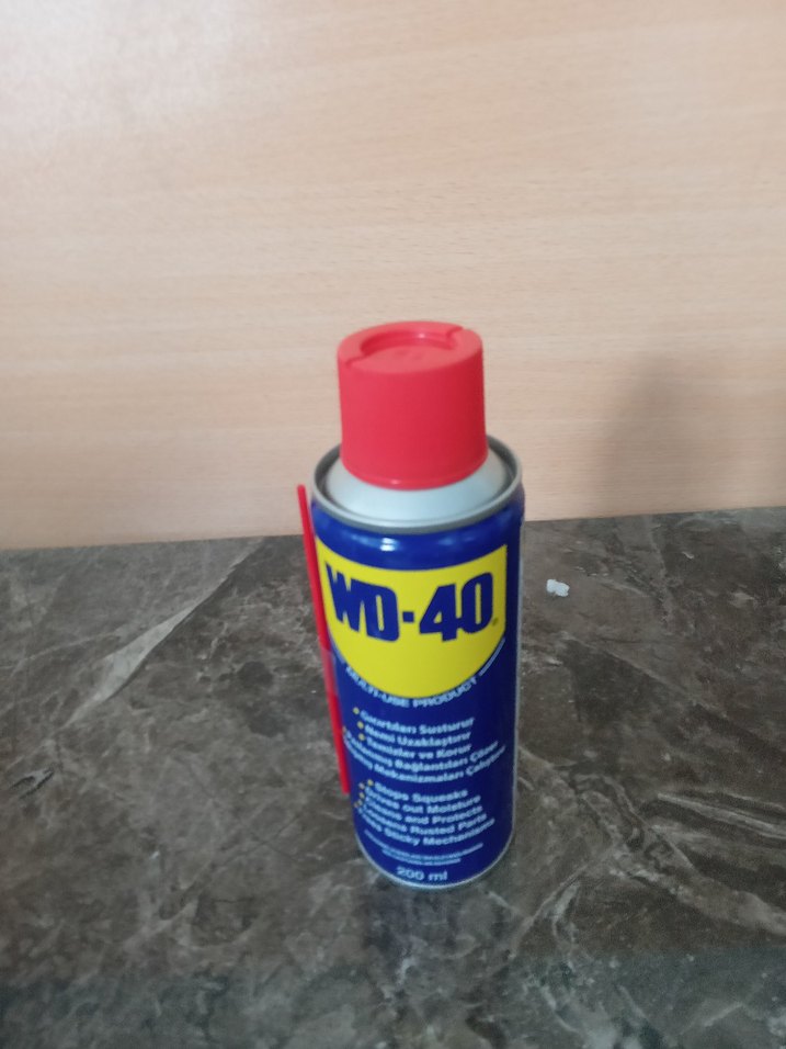 WD-40, metal yüzeyleri korumak ve yağlamak için kullanılan 300 ml çok amaçlı yağlayıcı sprey.