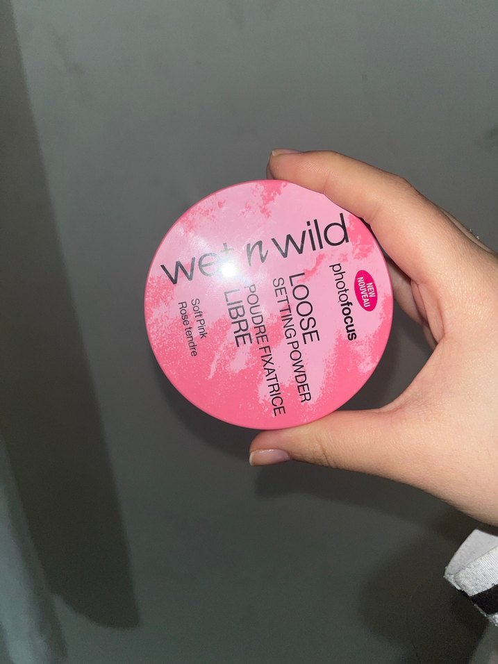 We Wild Photofocus gevşek sabitleyici pudra, yumuşak pembe renkte. Makyajı sabitleyip parlama kontrolü sağlar.