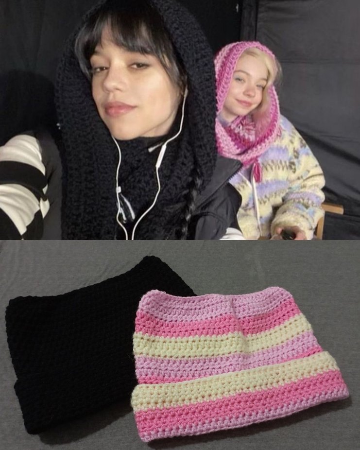 Örgü kadın bereleri koyu siyah ve pembe krem çizgili renklerde, rahat ve avangart tarzda trendsetterlar için tasarlandı.