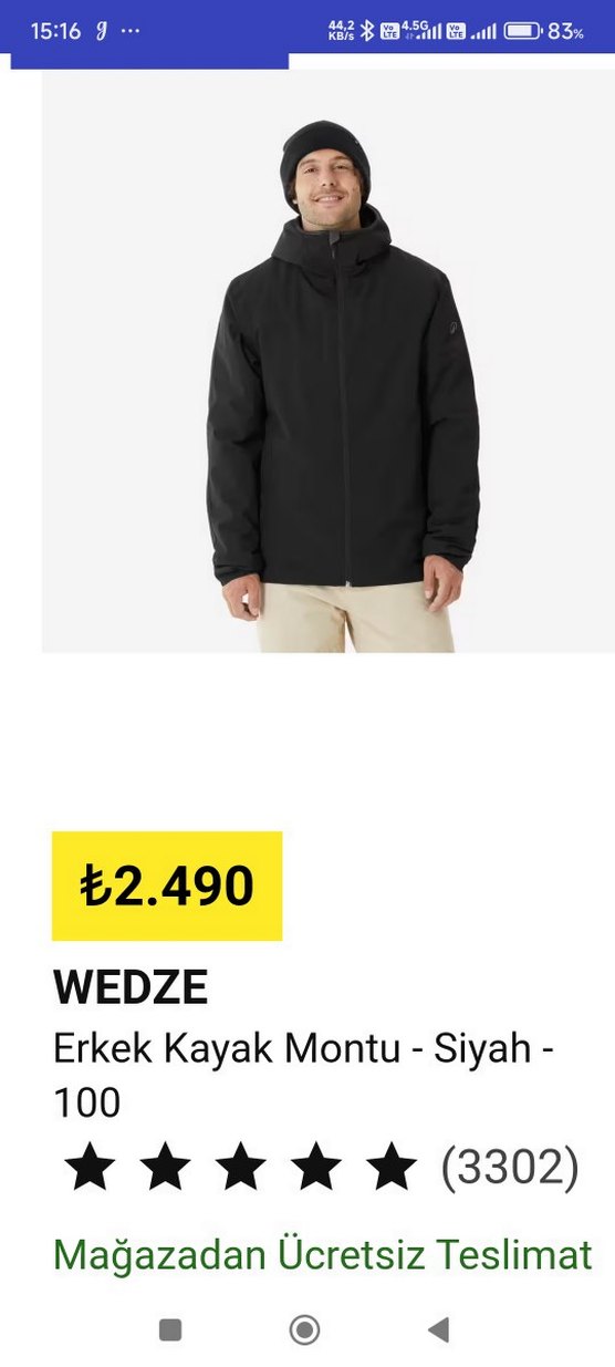 WEDZE markalı siyah erkek kayak montu, yuvarlak yaka ve uzun kollu, sentetik dokulu kumaştan üretilmiştir. Günlük kullanıma uygun, minimalist ve rahat kesim bir modeldir.