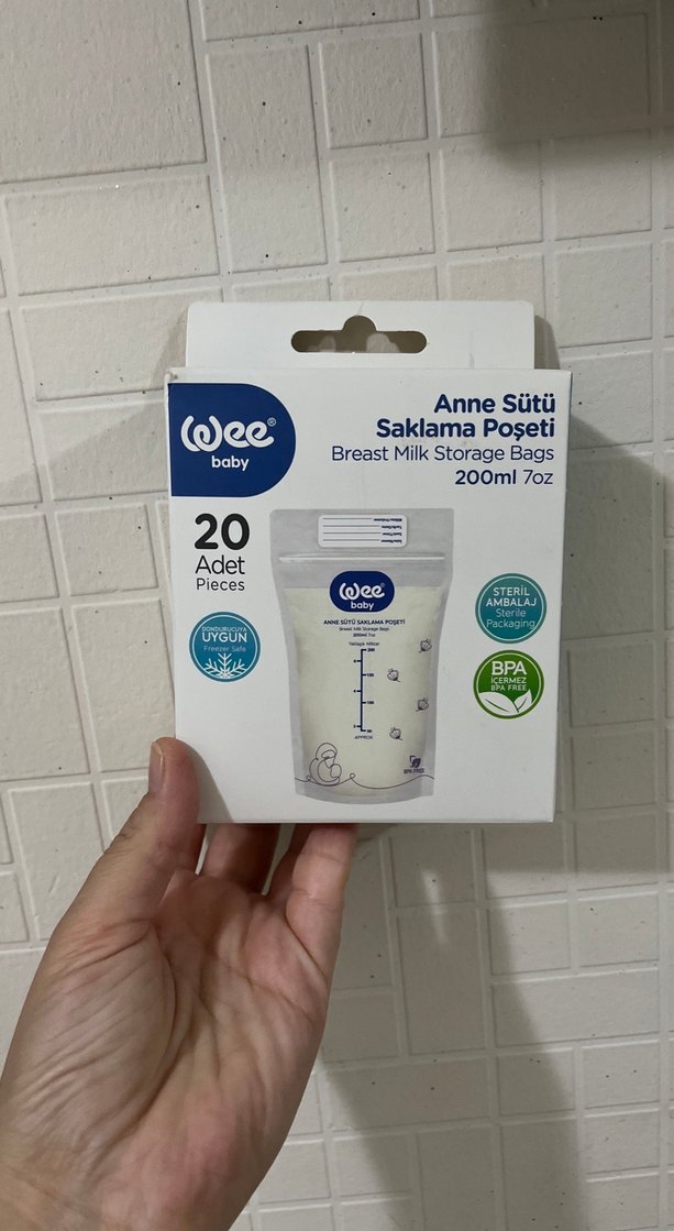 Wee Baby'nin pastel beyaz renkli, 200ml kapasiteli ve 13 adet içeren anne sütü saklama poşetleri BPA içermeyen ve steril yapıda. 13 adet var hiç kullanılmadı poşetin ve kutusunun içinde duruyor