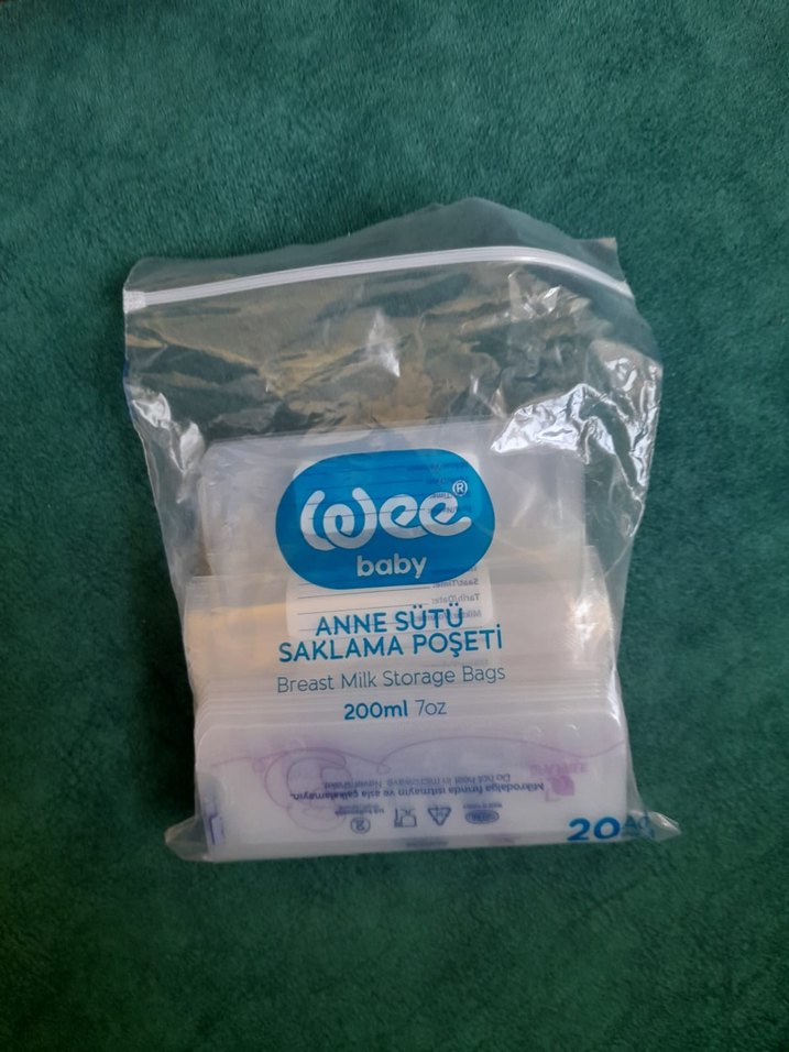 Wee Baby anne sütü saklama poşetleri, 200ml kapasite ile güvenli saklama sağlar. Pakette 20 adet poşet bulunur.
