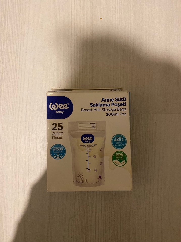 Wee Baby markasının 200ml kapasiteli, 25 adet pastel beyaz renkte anne sütü saklama poşeti. BPA içermez, güvenli saklama sağlar.