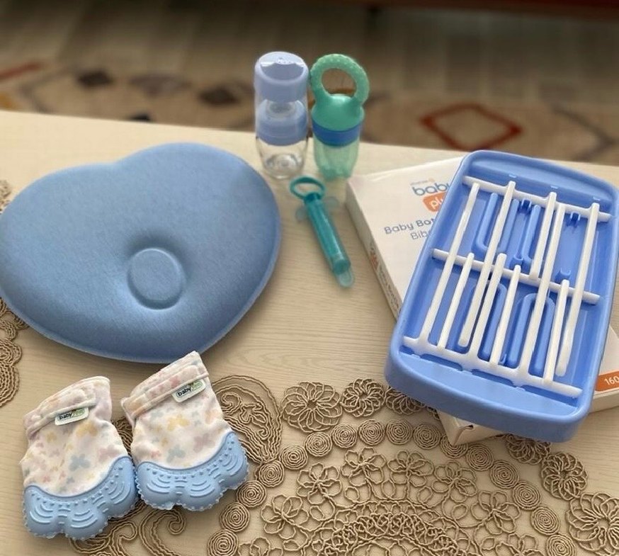 Bebek baş yastığı Diş kaşıyıcı Şurup şırıngası Alıştırma biberonu Mevye süzgeci Biberon kurutucu Banyo şapkası Ebebek ten alınmıştır kullanılmadı