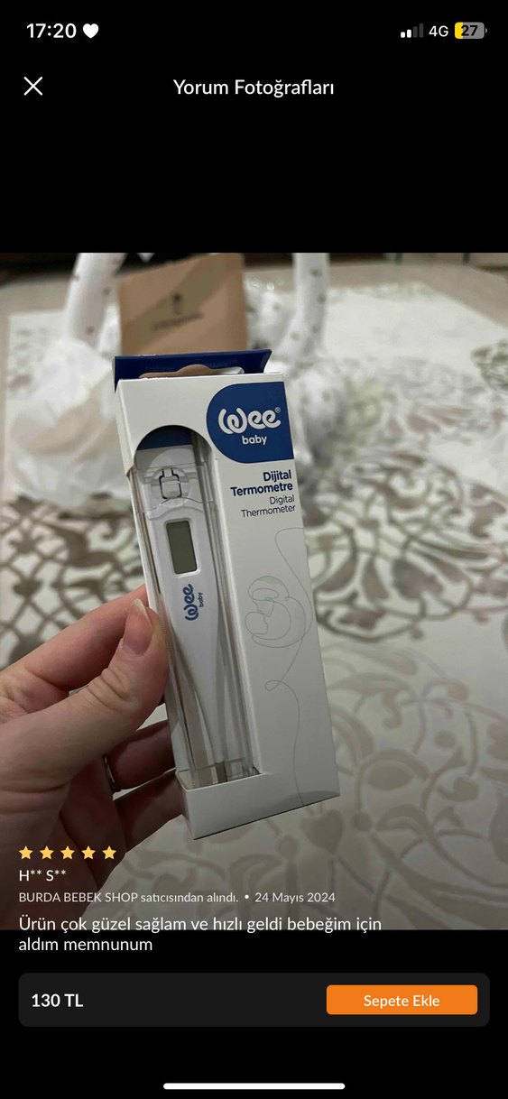 WEE Baby dijital termometre, net ve doğru ölçümler sağlar. Hafif tasarımı ve okunaklı ekranı ile pratik kullanım sunar. Vücut sıcaklığı ölçmek için uygundur. ️
