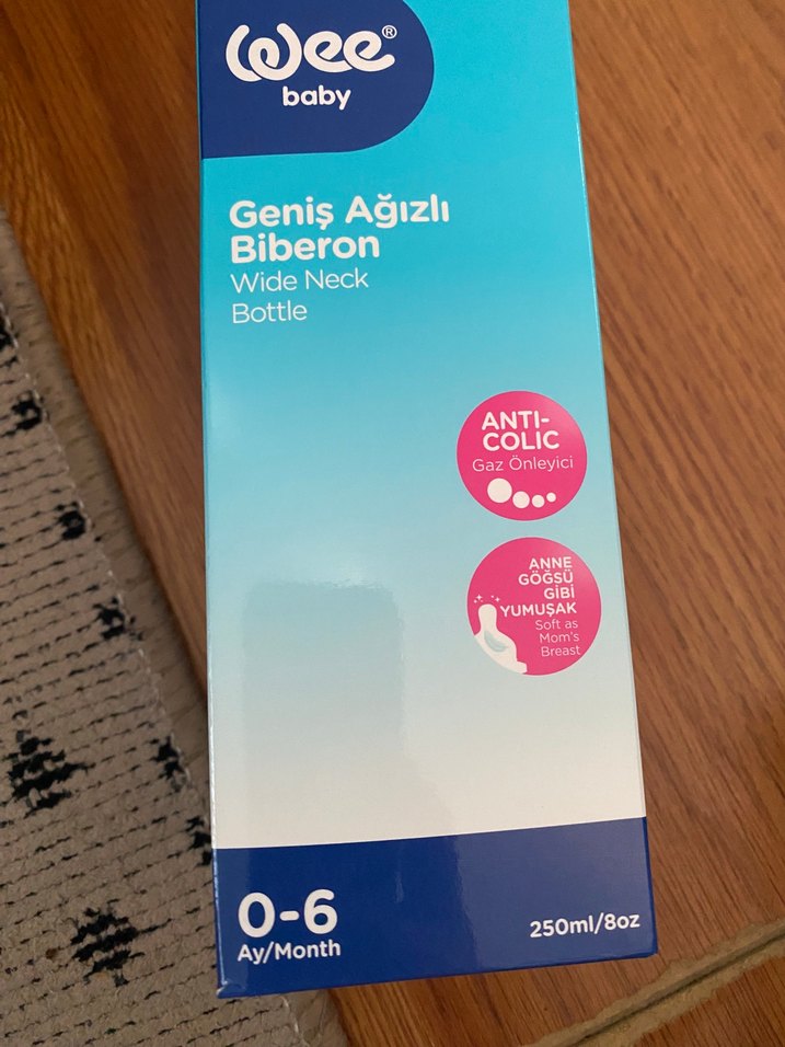 Wee Baby geniş ağızlı biberon, anne göğsü yumuşaklığında emzik ve gaz önleyici özelliğe sahiptir. 0-6 ay arası, 250ml hacimlidir.