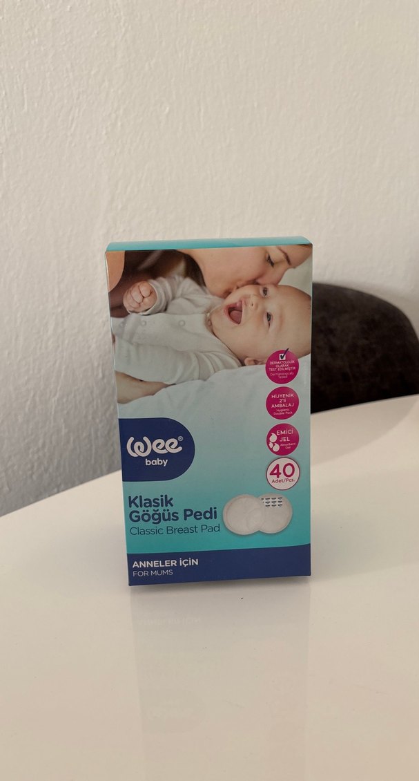 Wee Baby pastel beyaz klasik göğüs pedleri, anneler için rahatlık ve emicilik sağlar. Pakette 40 adet ped bulunur.