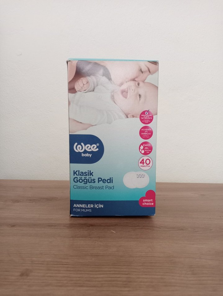 Wee Baby markasına ait beyaz klasik göğüs pedleri, anneler için konforlu ve koruyucu. Paket içinde 40 adet ped bulunur.