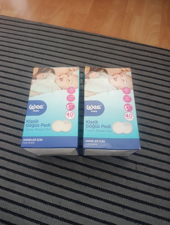 Wee Baby klasik göğüs pedleri, anne konforu için tasarlanmış 40 adetlik pakette,ikinci pakette yarimdir pastel mavi renkte.