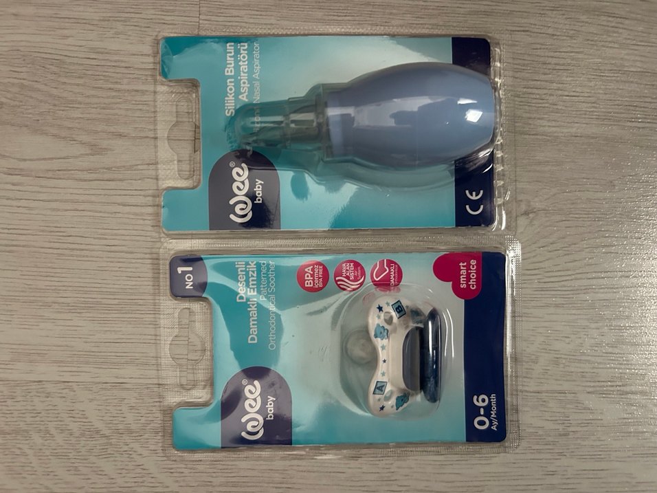 Wee baby marka Mavi Silikon Burun Aspiratörü ve Emzik Seti