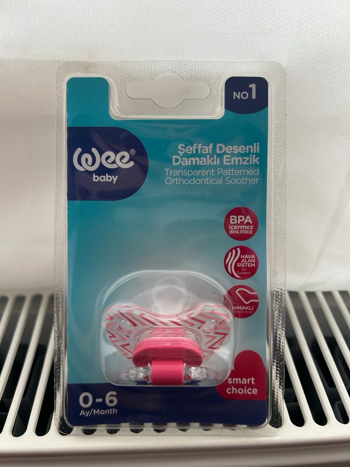 Wee baby marka Pembe Şeffaf Desenli Damaklı Emzik 0-6 Ay