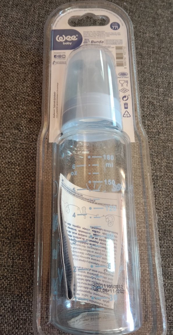 Wee baby mavi desen ısıya dayanıklı cam biberon