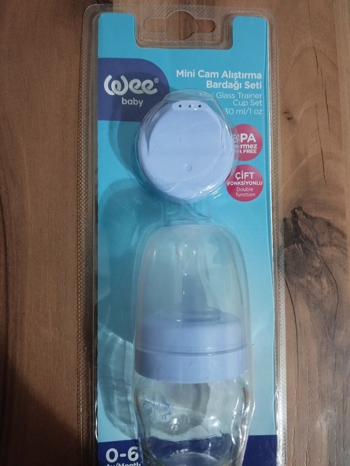 Wee Baby Mini Cam Alıştırma Bardağı Seti, 0-6 ay bebekler için 30 ml çift fonksiyonlu kapaklı biberon içerir. Sıfır ürün.