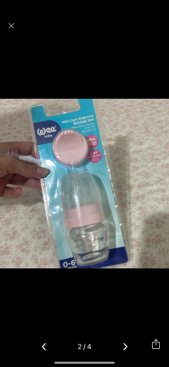 Wee Baby mini cam biberon seti, 50 ml pastel pembe kapak ve koruyucu kapaklıdır. BPA içermez, 0-6 ay bebeklere uygundur.