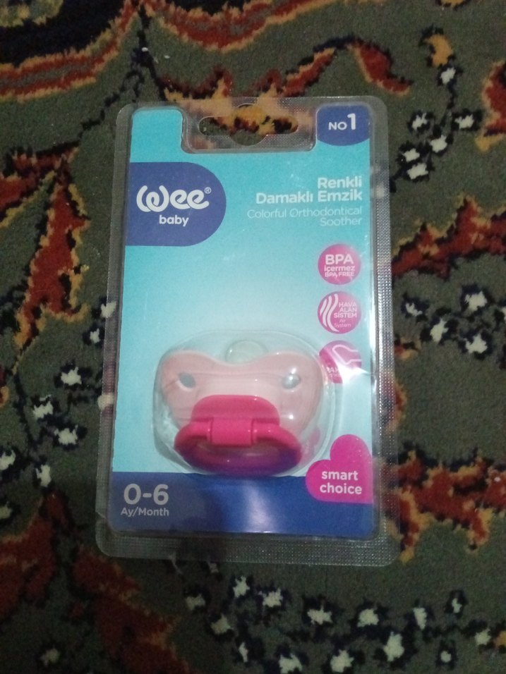 Wee Baby pembe renkli, 0-6 ay arası bebekler için ortodontik silikon emzik. BPA içermez, güvenli ve konforludur. Akıllı tercih.