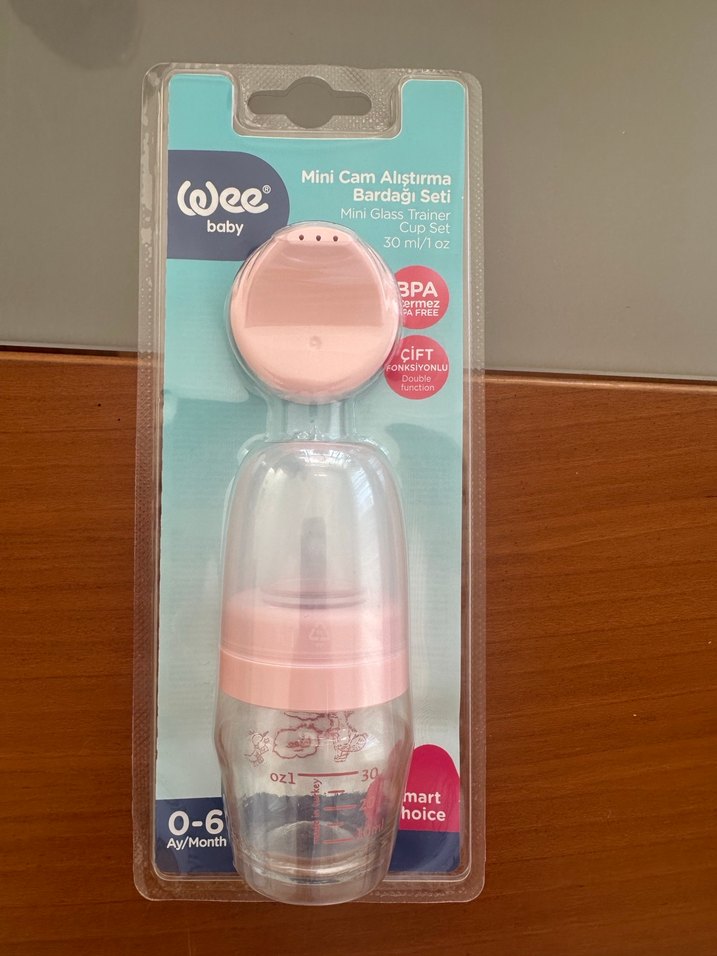 Wee Baby pembe mini cam alıştırma bardağı seti, 0-6 ay bebekler için uygundur.