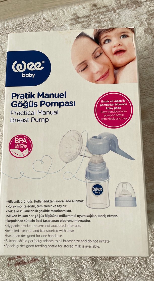 Wee Baby'nin pastel bej pratik manuel göğüs pompası, tek elle kullanıma uygun silikon kalkanla her göğüs ölçüsüne uyum sağlar. Özel saklama biberonu ve BPA içermez. Hijyenik, kolay monte edilir, temizlenir ve taşınır. Kullanımdan sonra iade alınmaz.