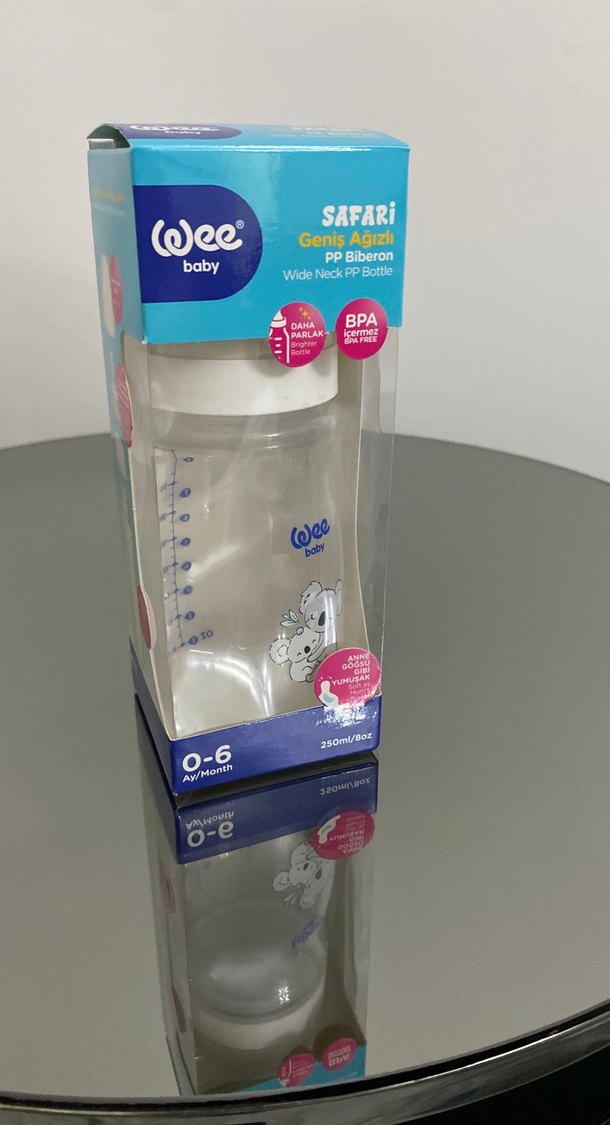 Wee Baby Safari geniş ağızlı bebek biberonu, BPA içermez ve 0-6 ay bebekler için uygundur. 250ml kapasiteye sahiptir ve üzerinde ölçü işaretleri bulunur. Kutulu sıfır hiç kullanılmadı