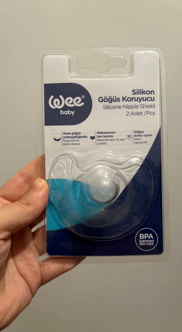 Wee Baby marka, yumuşak ve cilt dostu silikon göğüs koruyucu. Mavi renkte, 2 adet ve BPA içermez.