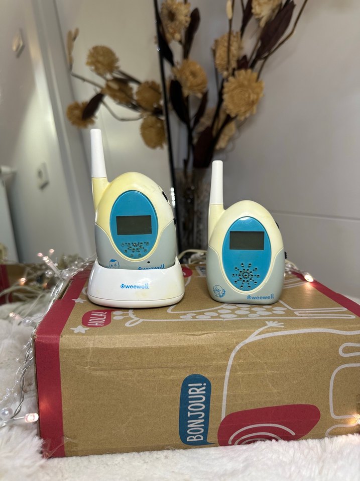 Weewell bebek telsizi, renkli ekranlı ve beyaz kompakt tasarımlı iki cihazdan oluşur. Antenli ve kolay izleme sağlar.