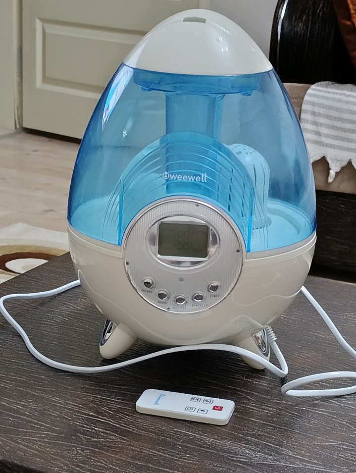 uşak içi satiş. WeeWell iyonizerli nemlendirici uzaktan kumandalı gece lambası olarak mavi ışık 5 litre su haznesi otomatik kapanma sadece 5 ay kullanıldı
