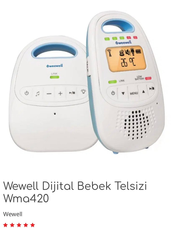 Wewell markalı beyaz dijital bebek telsizi, net ekran, ses kontrolü ve kullanımı kolay tuşlarla donatılmıştır. Bebeğiniz uyandığında yanına gidene kadar kenarındaki talk tuşunu kullanarak sesinizle onu rahatlatabilirsiniz. Gece ışığı, ninni müzikleri var. 2 adaptör- bebek ünitesi- ebeveyn ünitesi. BEBEK YATAĞINDA DÖNERKEN BİLE SESİ İLETEN MÜTHİŞ BİR TELSİZDİR. Bebek ünitesi prize bağlı çalışır , ebeveyn ünitesi şarjlı veya prizde çalıştırılabilir. 2 katlı evde kullandım mükemmel çekim kalitesi vardır.