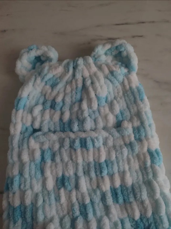 mavi beyaz renkli wegh balaklava Alize puffy iplerle yapılır