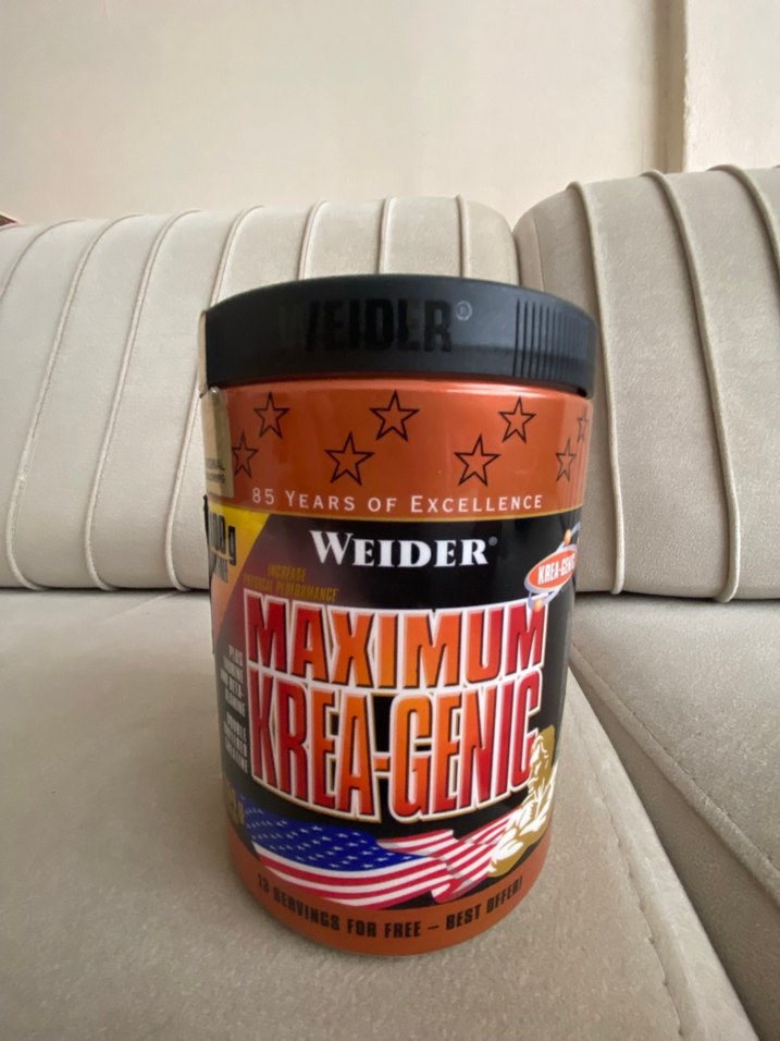 Weider Maximum Krea-Genic, parlak turuncu renkte, 85 yıllık mükemmeliyet kutlamasıyla performans ve iyileşmeyi destekleyen toz takviyedir. Ürün yeni açılmış olup içinden 2 ölçek alınmıştır.Kutu üzeri ufak yırtıklar mevcuttur.