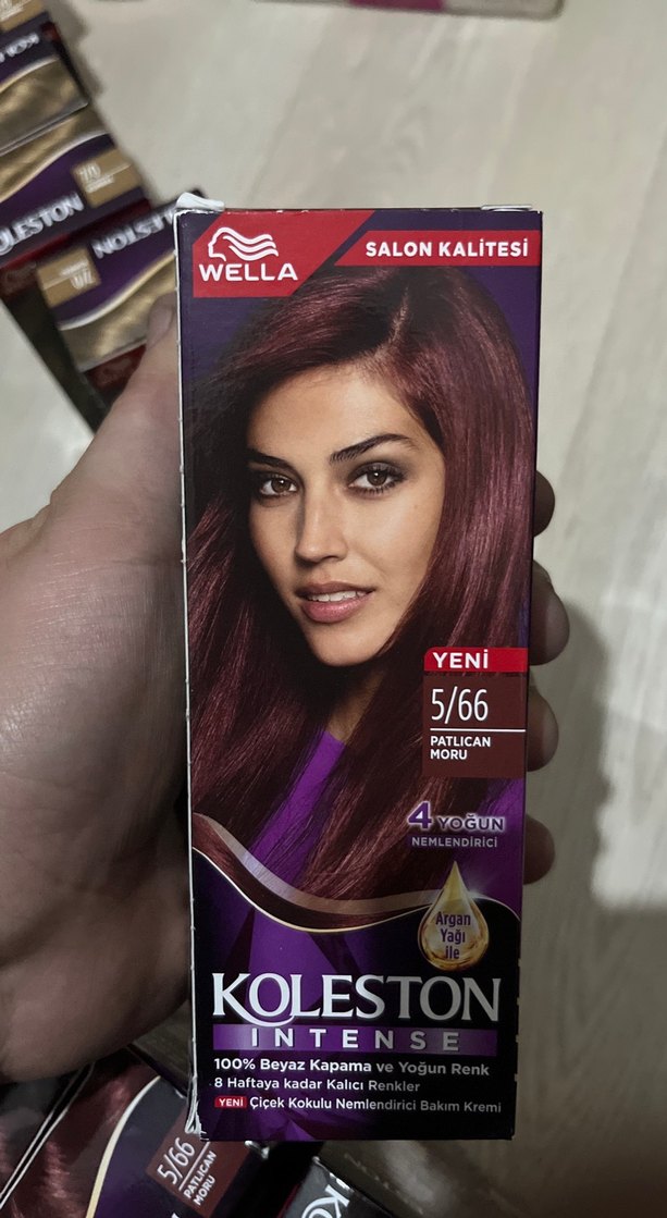 Wella Koleston Intense 5/66 Patlıcan Moru saç boyası, %100 beyaz kapama sağlar, salon kalitesinde yoğun renk ve argan yağı ile nemlendirir. Son 6 adet
